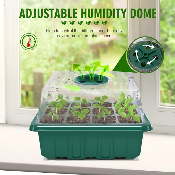 Každá tácka má 12 otvorov a viečko s vetracím prepínačom. Teraz môžete kontrolovať úroveň vlhkosti a zabezpečiť najlepšie prostredie pre vaše sadenice. Pestujte zdravé, dobre prevzdušnené korene pre silnejšie rastliny.